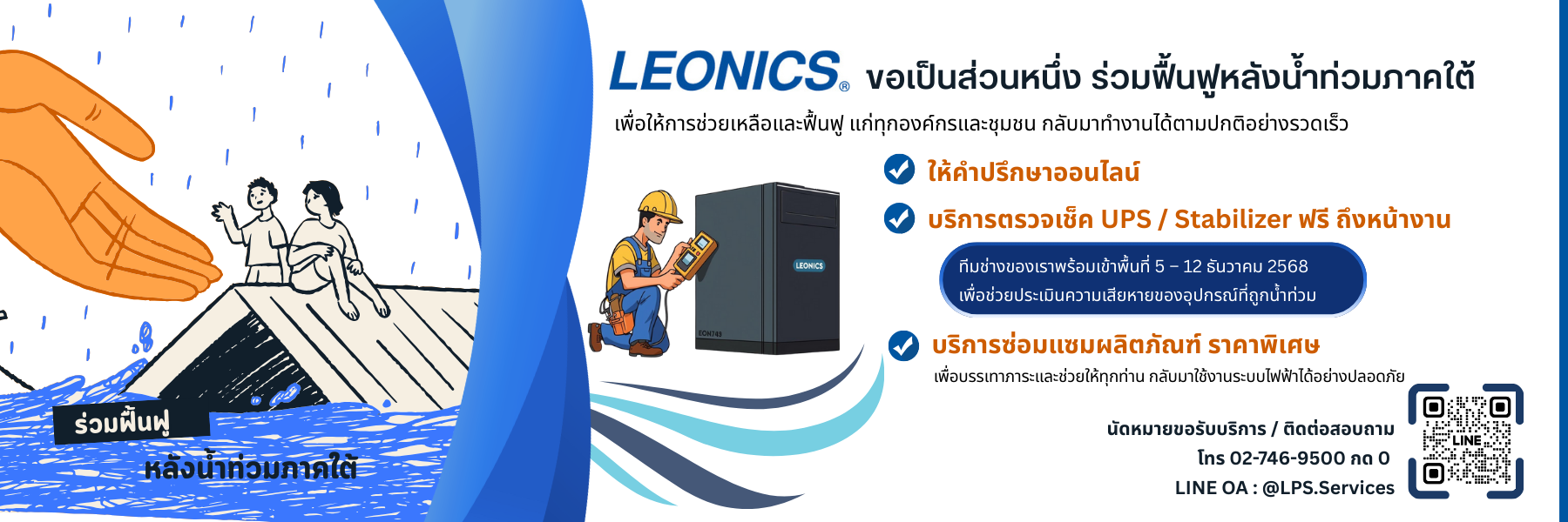 เครื่องสำรองไฟ MEXGA และ เครื่องสำรองไฟ LEONICS จ่ายไฟคุณภาพดีที่สุด (True online UPS) มีทั้งชนิดที่ใช้ร่วมกับไฟฟ้า 1 เฟส, ไฟ 3 เฟส